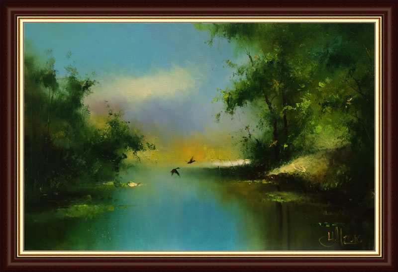 | Ганин Д. (г.Н.Новгород) «Утро во Франции», 20х42, холст/масло | Ковальчук С. (респ.Белоруссия) «Болото», 30х40, холст/масло | Павлычев В. (г.Владимир) «Апрель», 35х45, картон/масло |